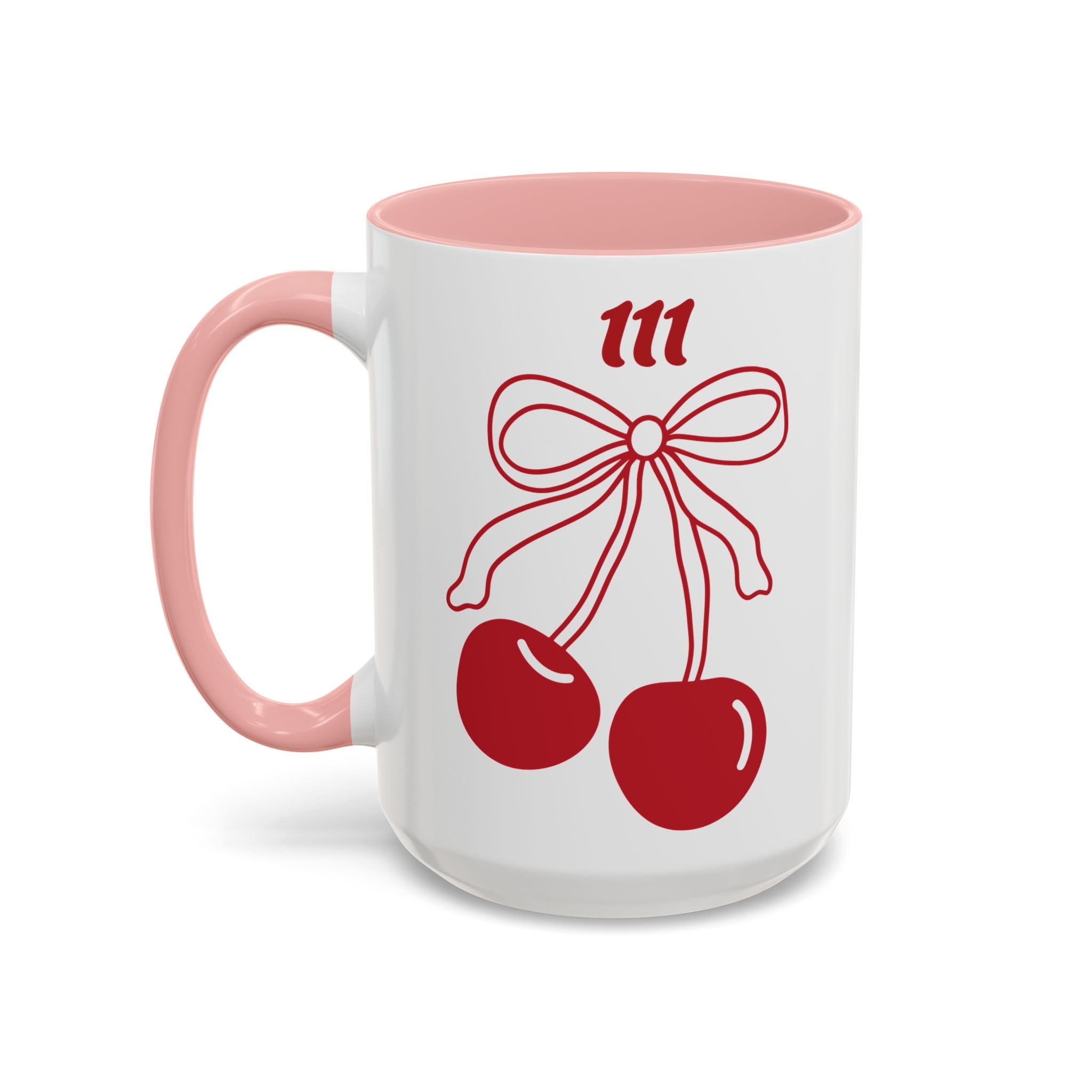 555 Angel Number Cherries Coffee Mug – Coquette Bow Kawaii | 11oz 15oz 20oz White Ceramic