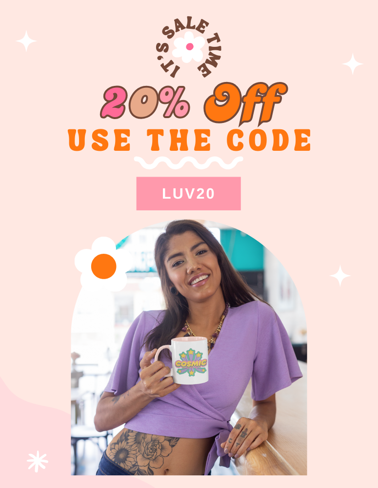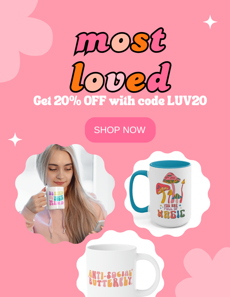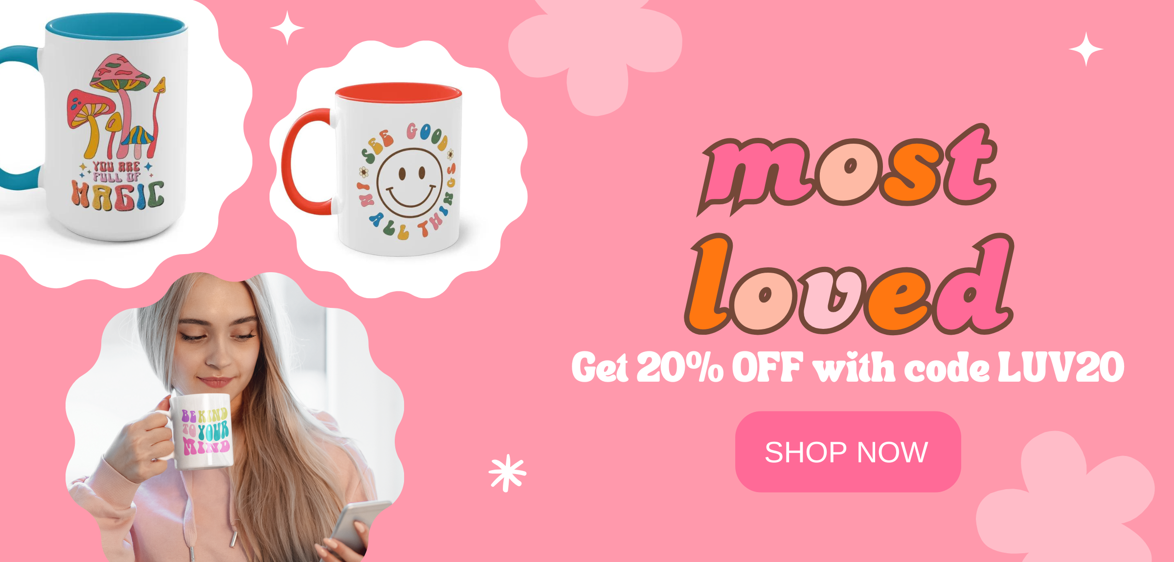 Discover affirmation mugs designed to bring a positive touch to your day! Crafted from ceramic materials, Luv Mugs are available in 20 oz, 15 oz, and 11 oz sizes, suited for your favorite hot beverages.